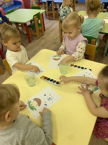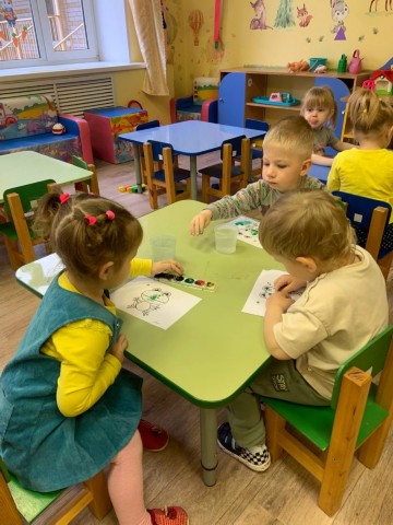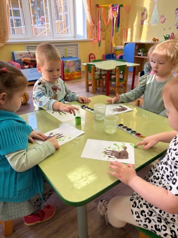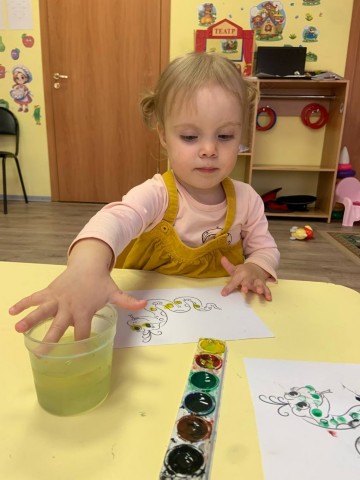 Мы рисовали пальчиками Курочек, солнышко, зайчиков Радугу,небо синее. Вышла картинка красивая. С пальчиков краску смываем, Сами себя поздравляем С тем, что такие художники. Мама, неси нам "пироженки!"